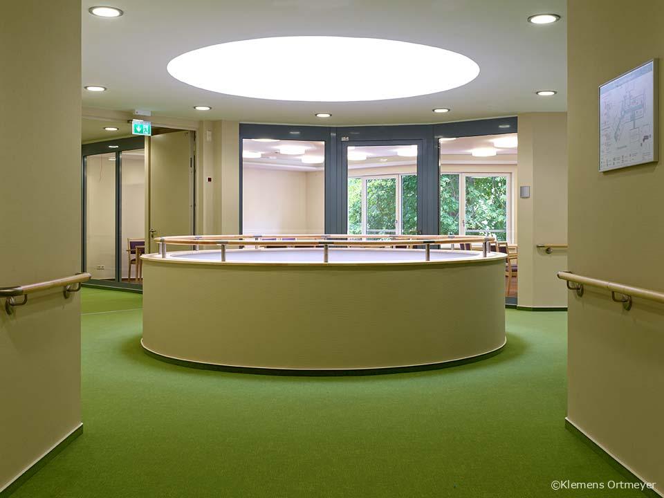 Auf dem Gelände des Diakonissen-Mutterhauses in Elbingerode wurde ein Baukörper zwischen drei Bestandsgebäuden eingefügt. Dieser Neubau bildet das Zentrum der Seniorenwohnanlage mit insgesamt 120 Pflegeplätzen. Das Erdgeschoss bietet neben zentralen, verbindenden Funktionen auch Tagespflegeplätze. Eine stationäre Pflege mit einzelnen Kurzzeitpflegeplätzen ist im 1. und 2. Obergeschoss angeordnet.